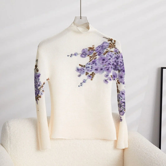 Long Halfskirt Set Women's Fashion Women's Spring New Long Sleeve Pleated T-shirt Pleated Skirt Two Piece Set