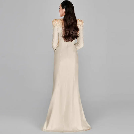 European and American celebrity fashion heavy industry nail bead three-dimensional flower green fruit collar dress formal dress long skirt