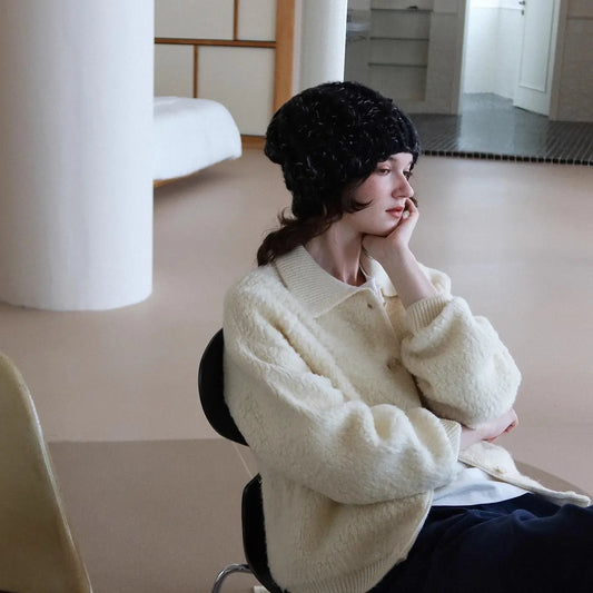 Cashmere Wool Coat Women's Elegant Warm Thick Lamb Fur Coat Heavyweight Knitted Top