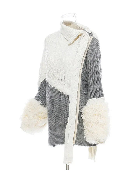 Asymmetrical Split Fur Big Size Knitting Sweater Loose Fit Long Sleeve Women New Fashion Trend Spring Autumn